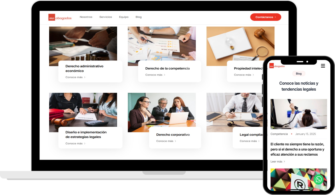 Desarrollamos una web con un diseño estructurado y visualmente atractivo que refleja confianza y profesionalismo. Optimizamos la experiencia de usuario para que sea intuitiva y accesible en cualquier dispositivo.